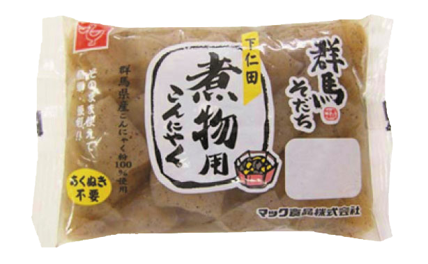 味しみをよくするため、形を不ぞろいにした、煮物用こんにゃくです。あくぬき不要で、水洗いだけで、煮物、汁物、炒め物などの料理にご使用できます。