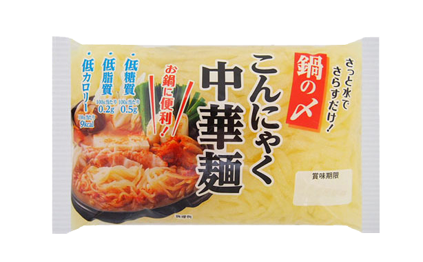 粉末豆乳を練り込んだ、ヘルシーなこんにゃく麺。鍋の〆の中華めんの代わりや、キャベツ・人参・ニラなどと一緒に煮込んで煮込みラーメンに。もちろん、生野菜、サラダチキンと一緒にドレッシングをかけてサラダ麺としてもご利用できます。