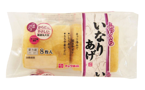 HOME商品紹介豆腐・揚げいなりあげ8枚入 豆腐・揚げ いなりあげ8枚入 油揚げを1/2にカットし包装しました。開け口が開きやすいようにしてありますので、稲荷寿司や餅巾着などにお使いください。 規格:8枚保存方法:要冷蔵(2℃〜10℃) 豆腐・揚げ 栄養成分表示(100g当たり) エネルギー392kcalたんぱく質25.5g脂質31.9g炭水化物0.6g食塩相当量0g アレルギー関連 大豆