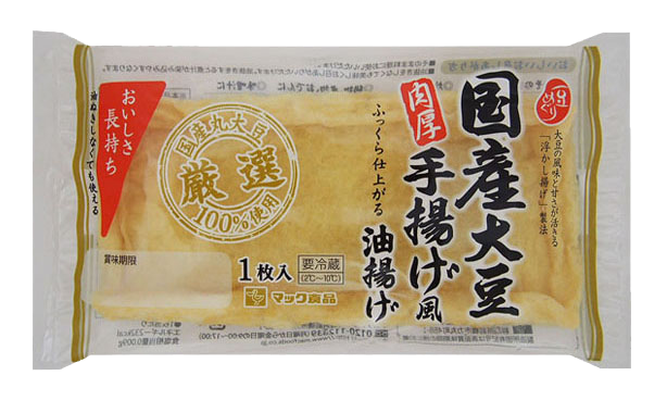 厳選した国産大豆を使用した大豆の風味と甘みが味わえる手揚げ風油揚げです。しっとりふんわりした食感なので、煮物・鍋物に最適です。
