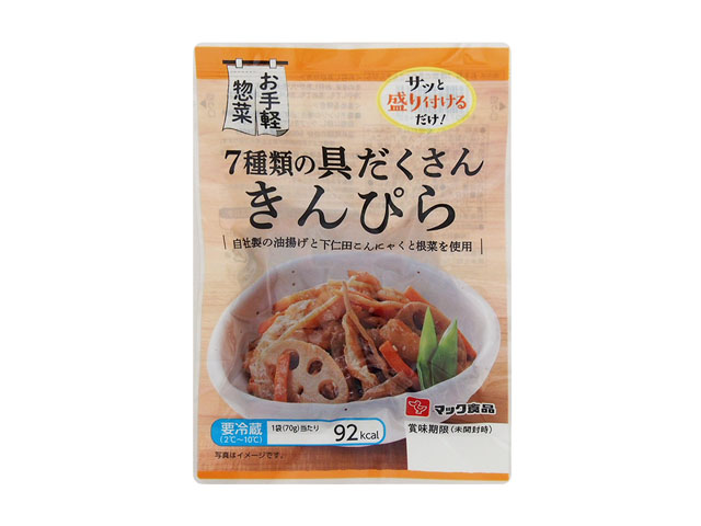 定番の総菜を手軽に使いやすい少量パックにしました。殺菌済みですので冷蔵庫に常備して食べたい時にすぐ食べられて大変便利です。シャキシャキとしたレンコンと人参、蒟蒻をピリ辛に炒めました。白いご飯やビールによく合います。