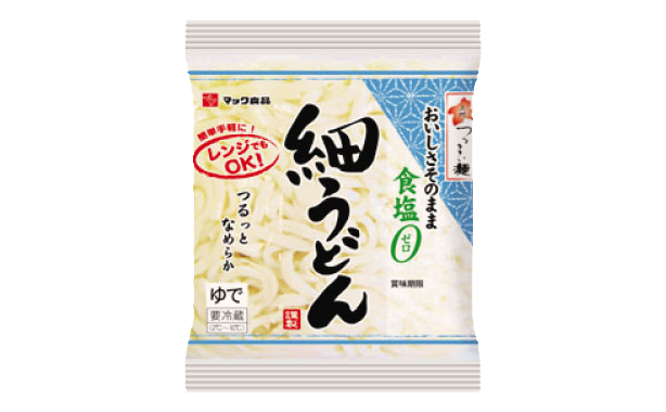 HOME商品紹介麺食塩ゼロ細うどん(ゆで) 麺 食塩ゼロ細うどん(ゆで) 厳選した小麦粉を水のみで練り込み、つるりとなめらかな美味しい食感に仕上げました。 規格:200g保存方法:要冷蔵(2℃〜10℃) 麺 栄養成分表示(1食200g当たり) エネルギー234kcalたんぱく質5.6g脂質1.8g炭水化物48.6g食塩相当量0.1g アレルギー関連 小麦