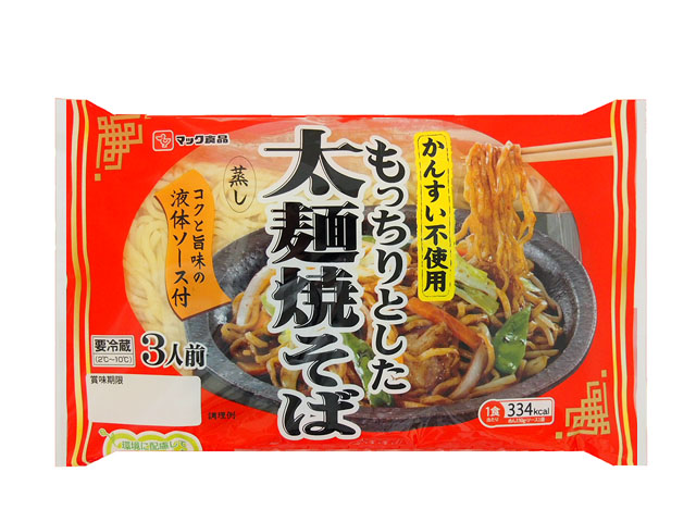 麺は「かんすい」を使用せず、もっちりとした食感の極太平打ち麺で、液体ソースが良く絡みます。「グルタミン酸ナトリウム」不使用の特製液体ソースは、甘めでありながらソース感を残した太麺にあう味です。