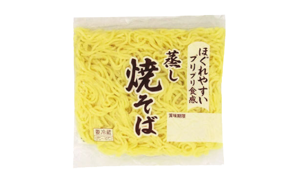 HOME商品紹介麺蒸し焼そば135g 麺 蒸し焼そば135g 一人分の焼きそば用麺です。充分に練りあげられた生地を使用し、腰が強く、ほぐれやすい麺に仕上げました。 規格:135g保存方法:要冷蔵(2℃〜10℃) 麺 栄養成分表示(1食135g当たり) エネルギー224kcalたんぱく質7.2g脂質2.2g炭水化物44.1g食塩相当量0.5g アレルギー関連 小麦、大豆