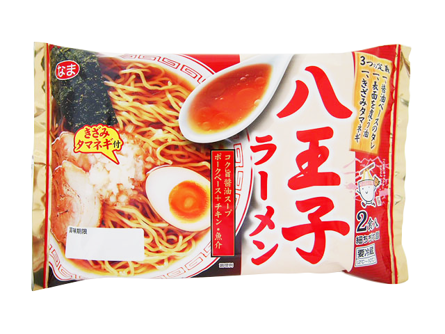 「醤油ベースのタレ」、「表面を覆う油」、「きざみタマネギ」が特徴の八王子ラーメンを再現しました。八麺会承認の自慢の逸品です。