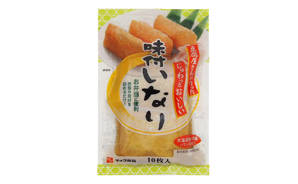 HOME商品紹介豆腐・揚げ味付いなり10枚 豆腐・揚げ 味付いなり10枚 煮汁をしっかりと含み、じゅわっとふっくら、程よい甘さの味付いなりです。そのままご飯を詰めるだけで簡単においしいいなり寿司が作れます。 規格:10枚入保存方法:冷暗所 豆腐・揚げ 栄養成分表示(100g当たり) エネルギー230kcalたんぱく質11.4g脂質11.4g炭水化物20.5g食塩相当量1.6g アレルギー関連 小麦、大豆、りんご