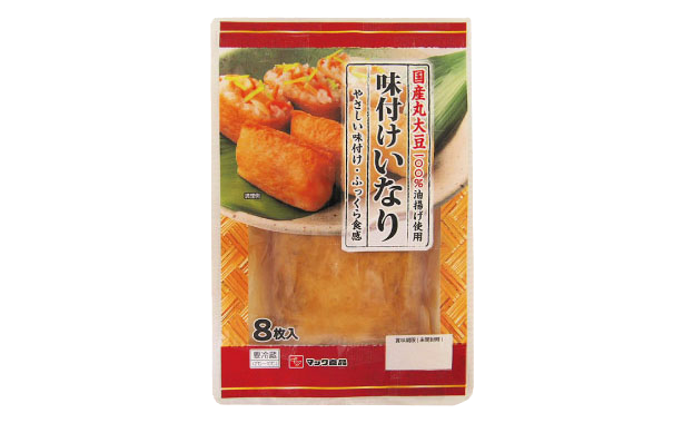 国産大豆100%で作った油あげを使用して、柔らかな食感に仕上げました。8×7と少しい大きめなサイズで、オープンいなりにも使いやすいです。味付けは、甘すぎない上品な味付けにしました。