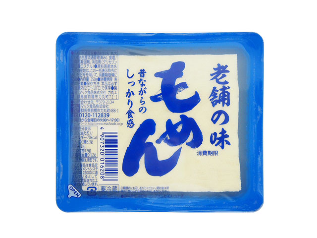 HOME商品紹介豆腐・揚げしっかり食感もめん 豆腐・揚げ しっかり食感もめん にがり100%を使用したほんのり大豆の甘味が感じられる木綿とうふです。しっかりとした食感に仕上げてありますので、どんな料理にもお使い頂けます。 規格:400g保存方法:要冷蔵(2℃〜10℃) 豆腐・揚げ 栄養成分表示(100g当たり) アレルギー関連 大豆